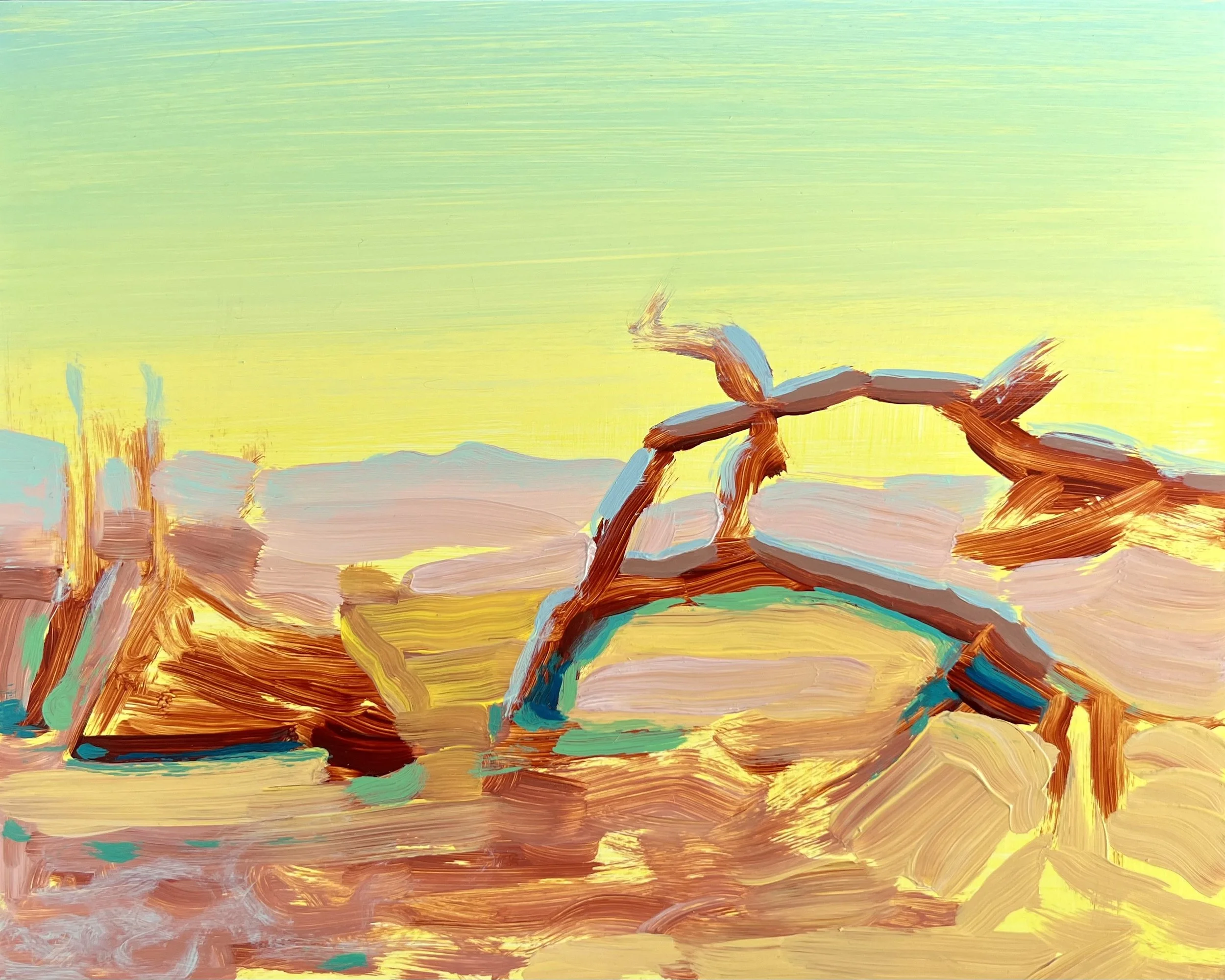 “Sticks in the Yellow Desert”, Acrylic on Panel, 8x10in, 2023.