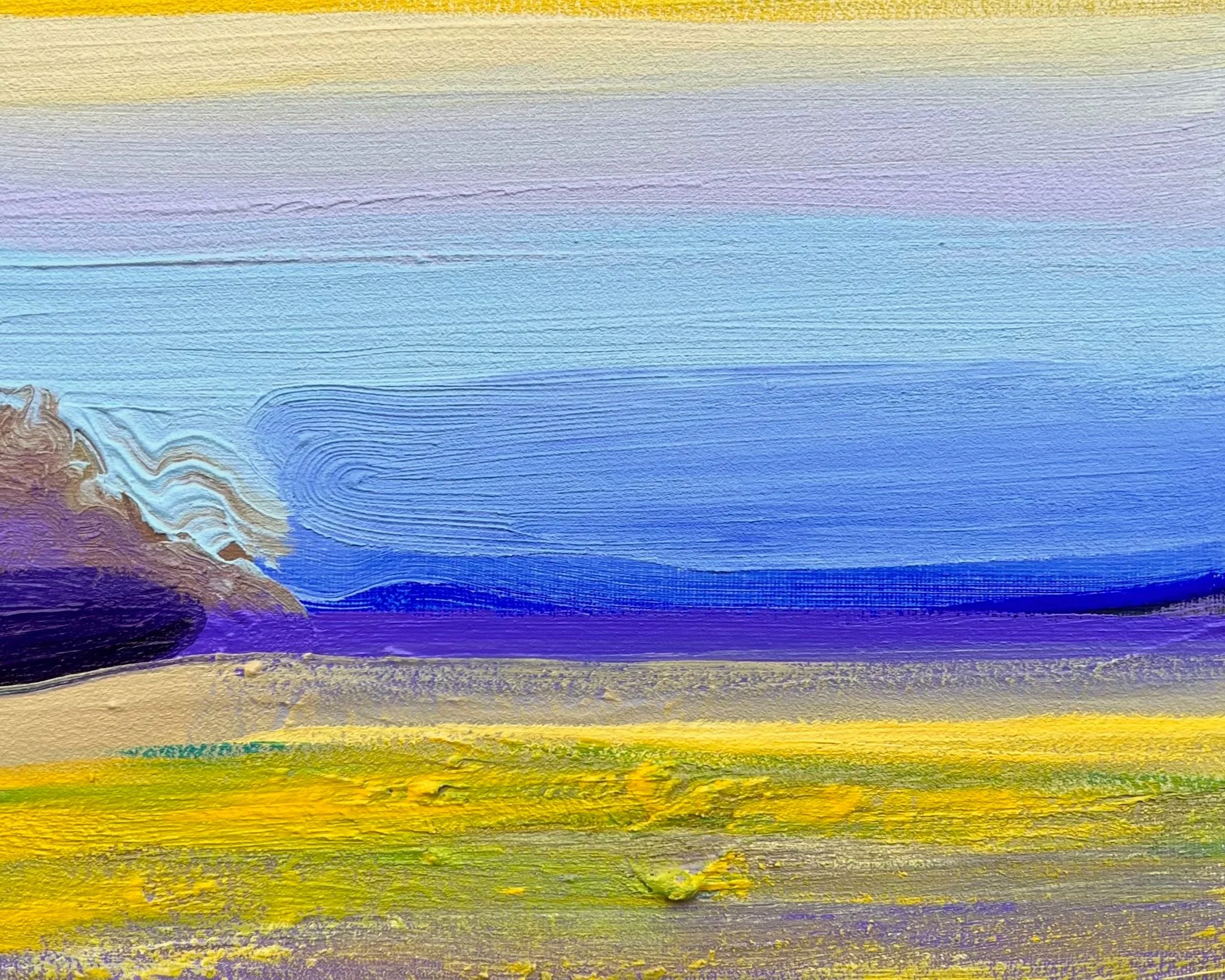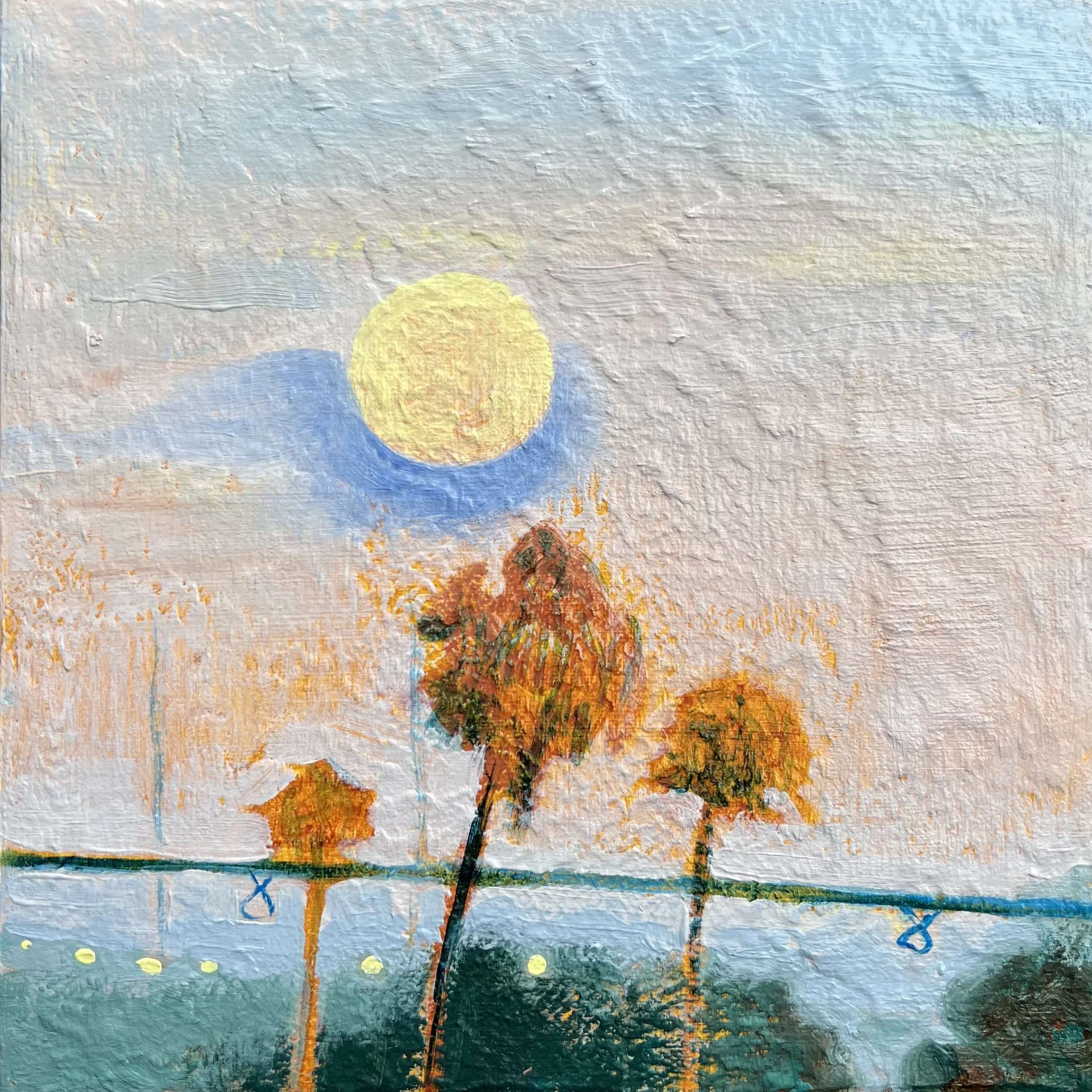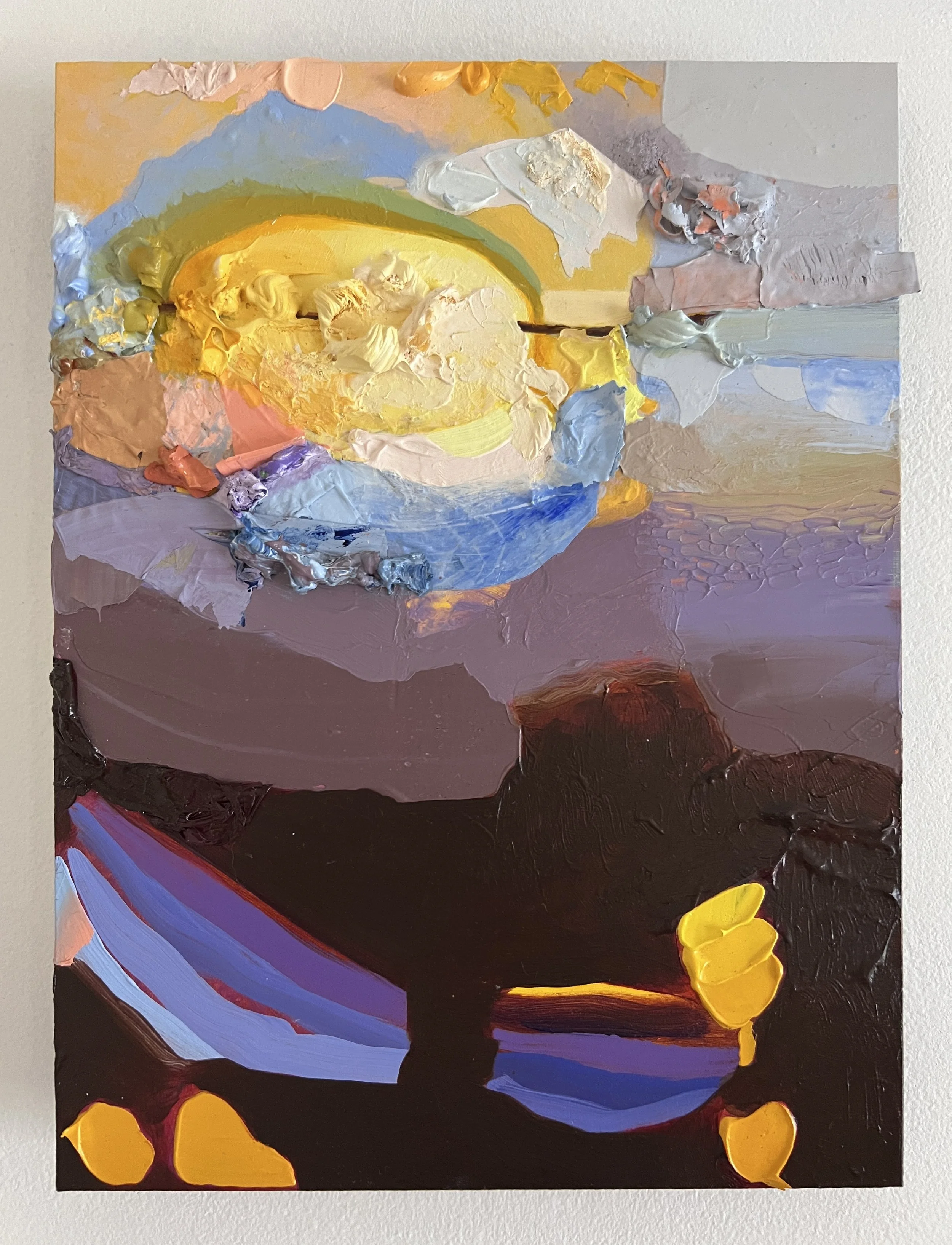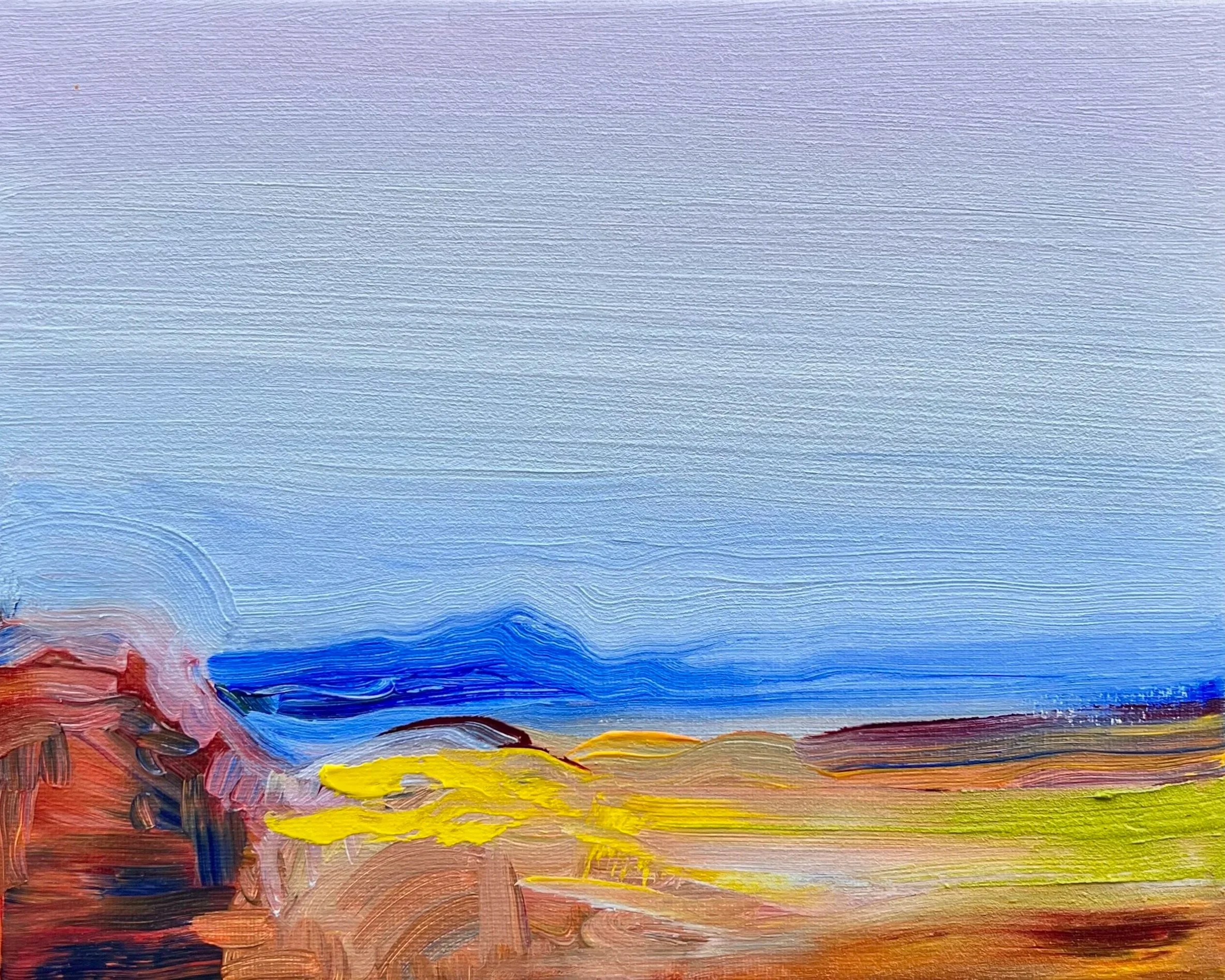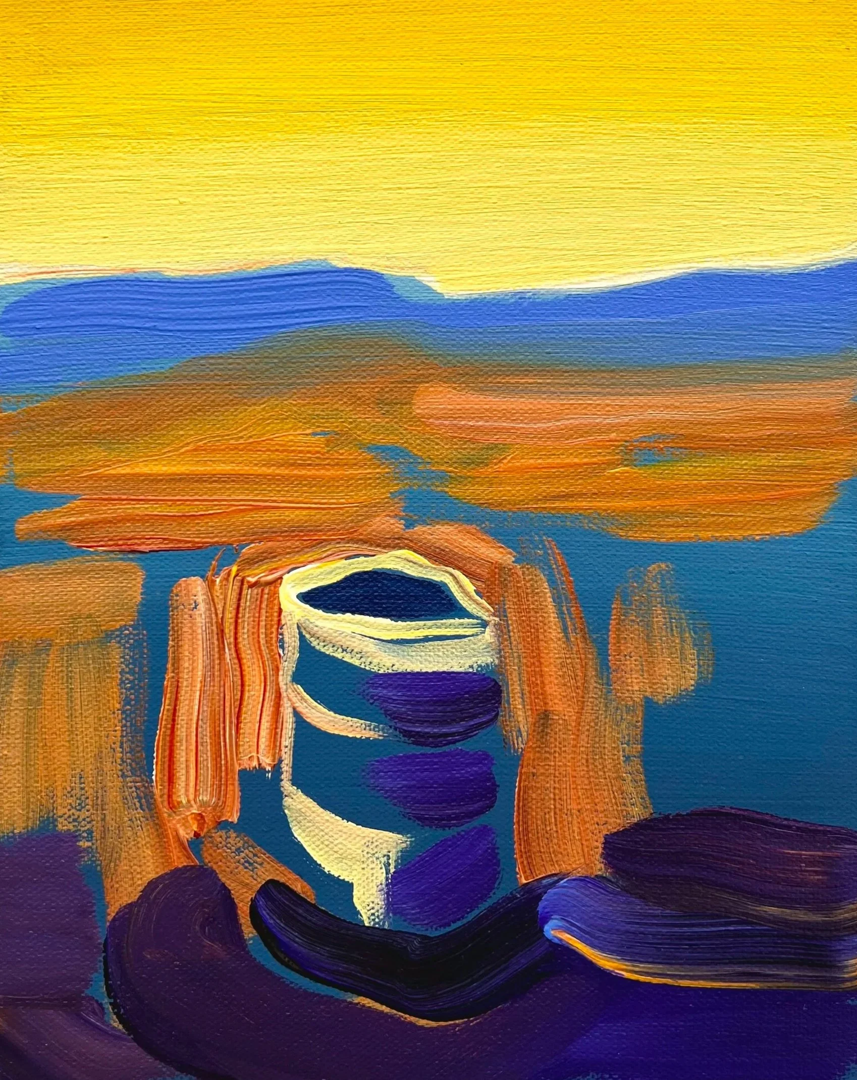 “Sunrise, Comic Book Filter”, Acrylic on Panel, 9x12in, 2024.