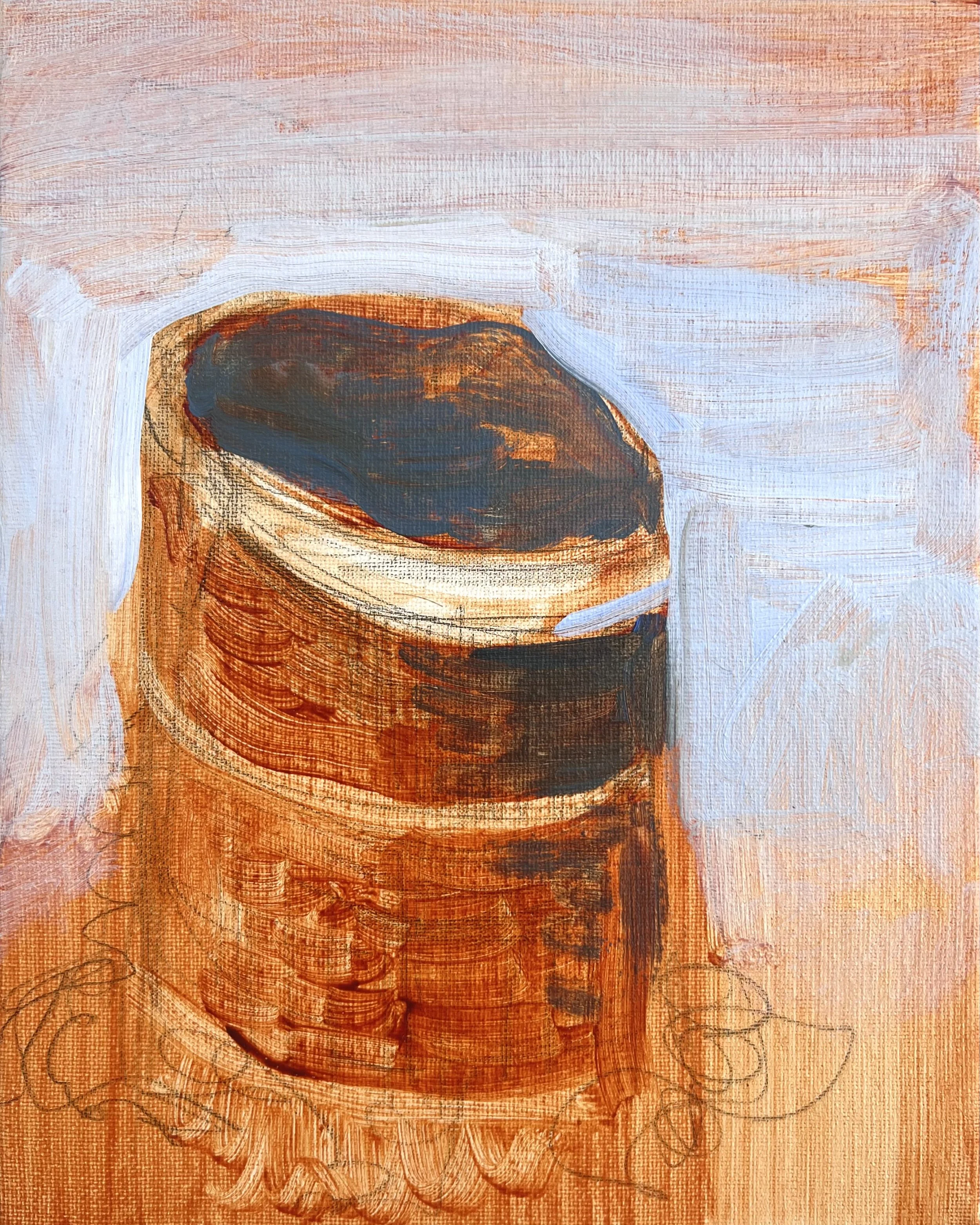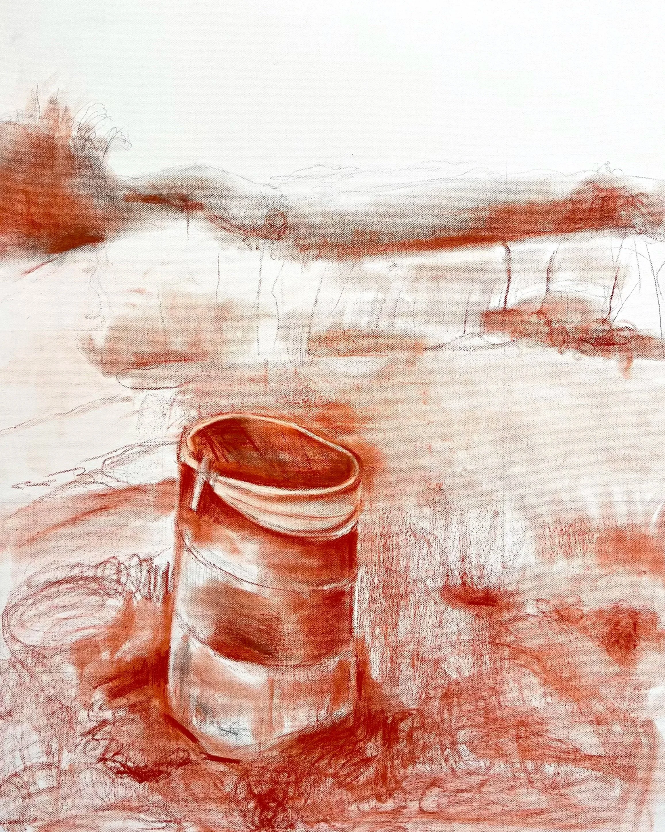 “Misty Trashcan”, Acrylic on Canvas, 8x10in, 2023.