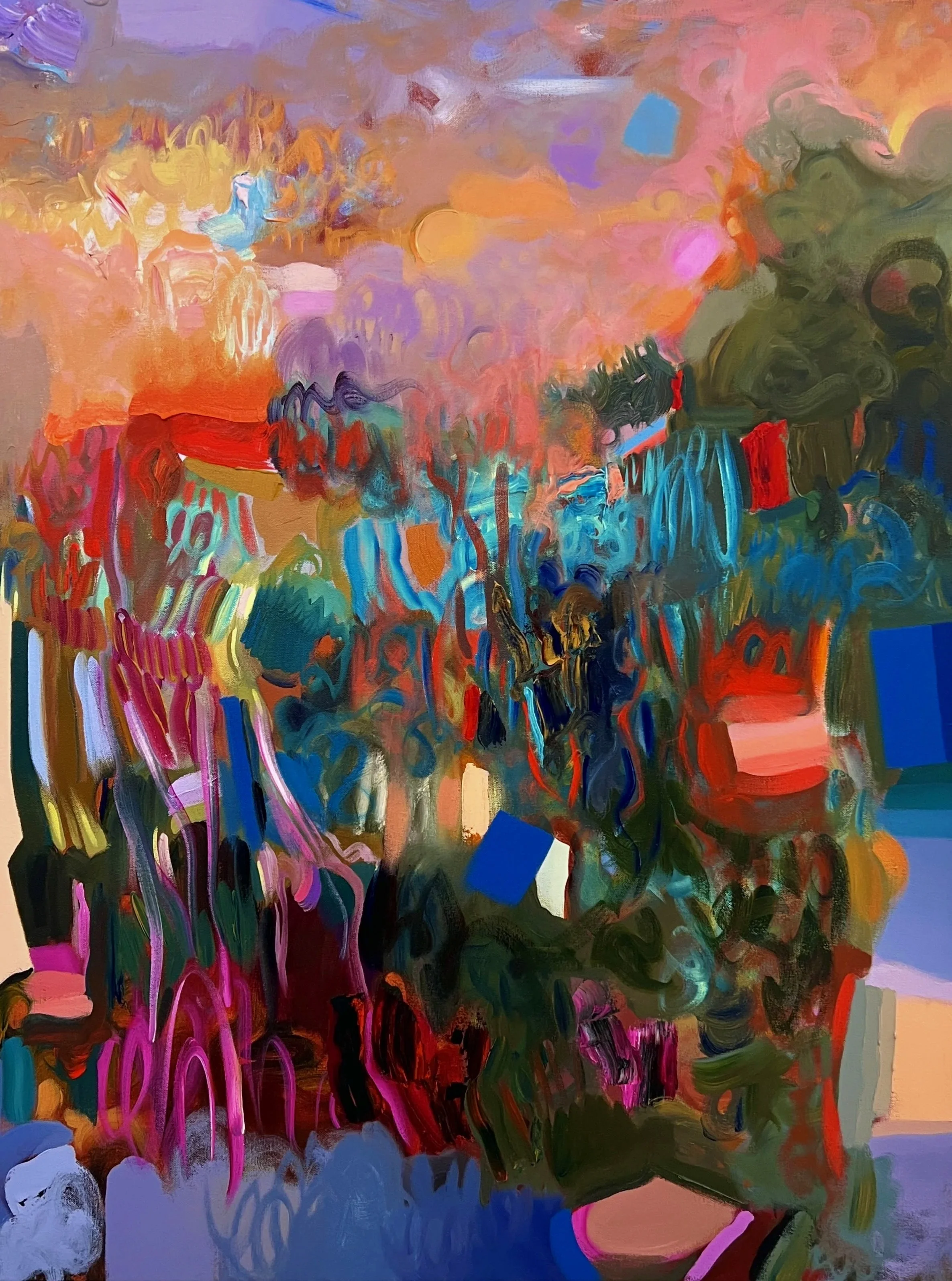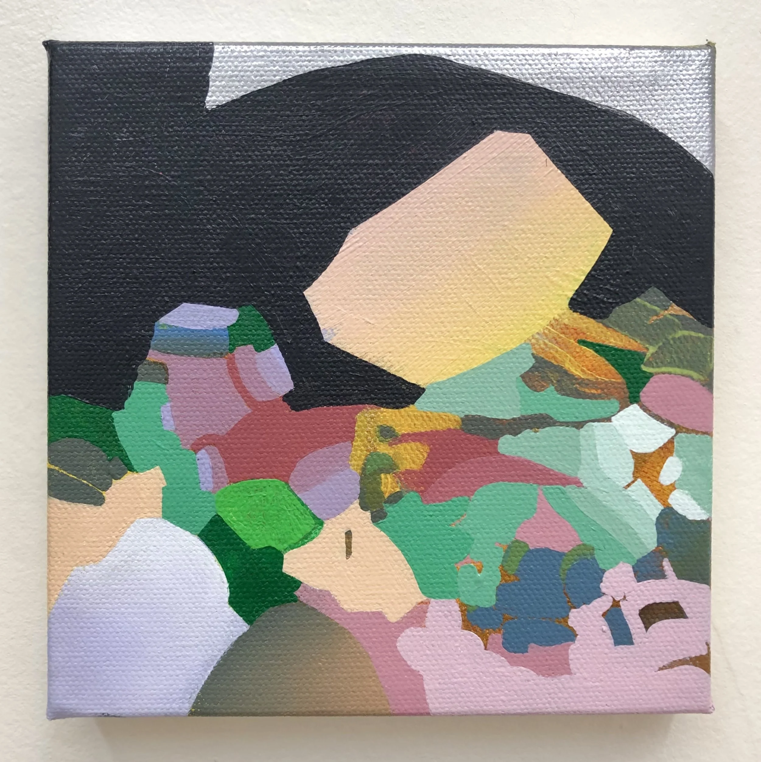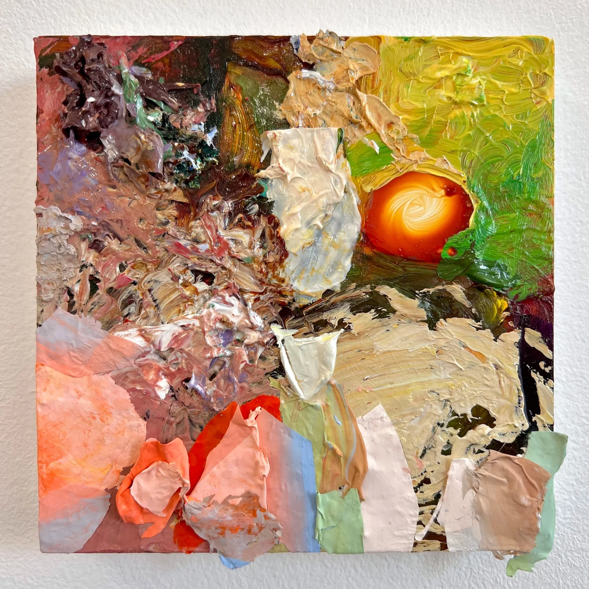 “Iris Becomes Sunset”, Acrylic on Panel, 6x6in, 2024.