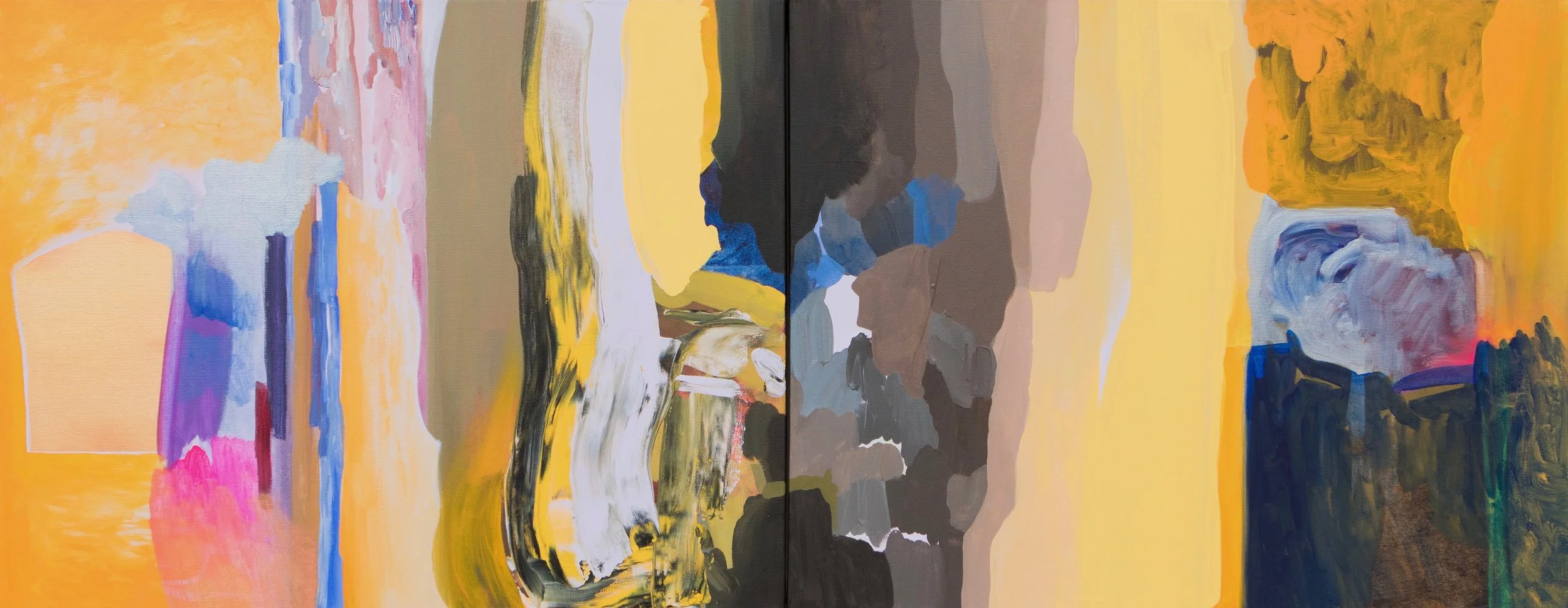 “Desert: Day and Night”, Acrylic on Canvas, 8x16in (two 8x8in panels), 2024.
