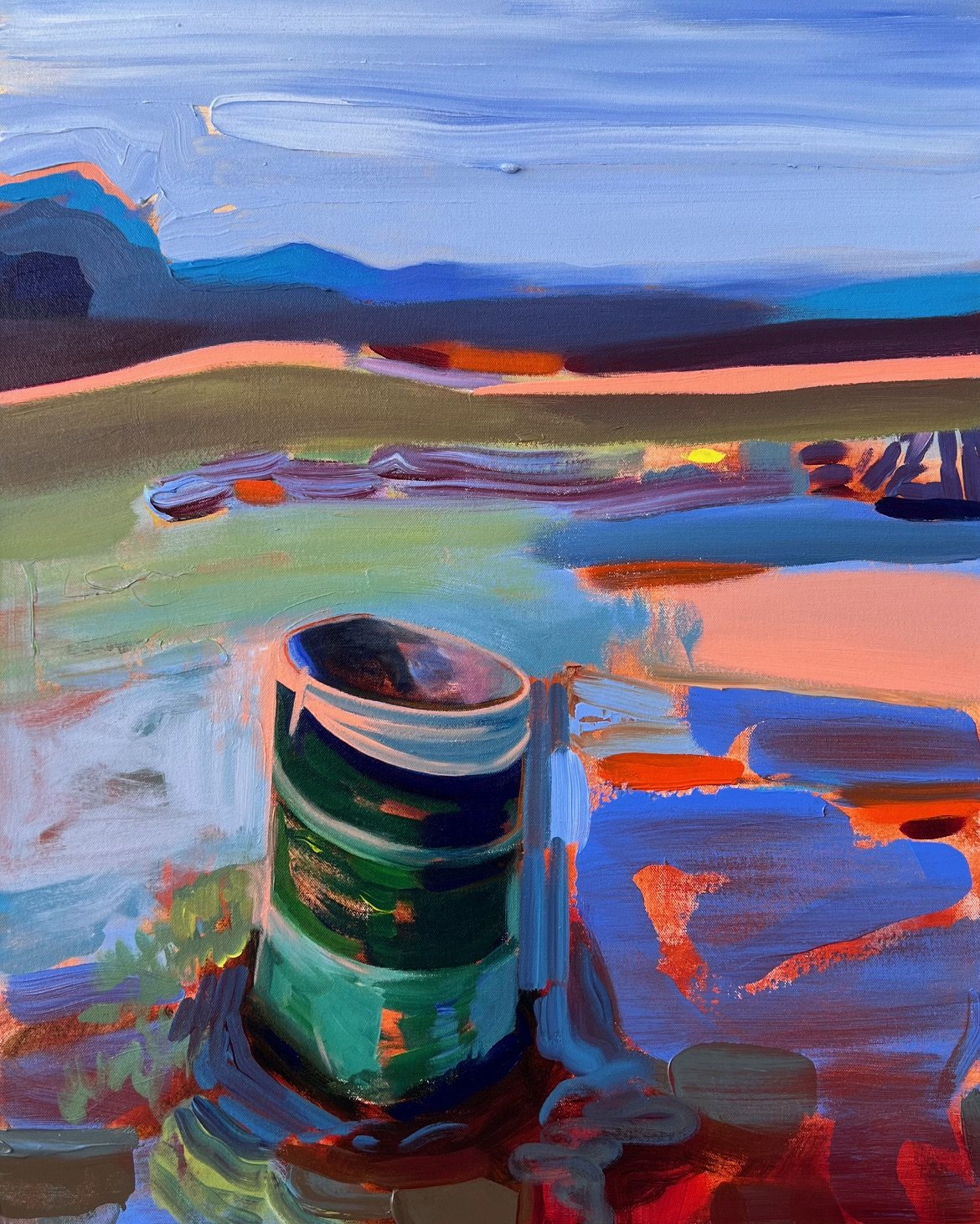 Trashcan watches the sunset